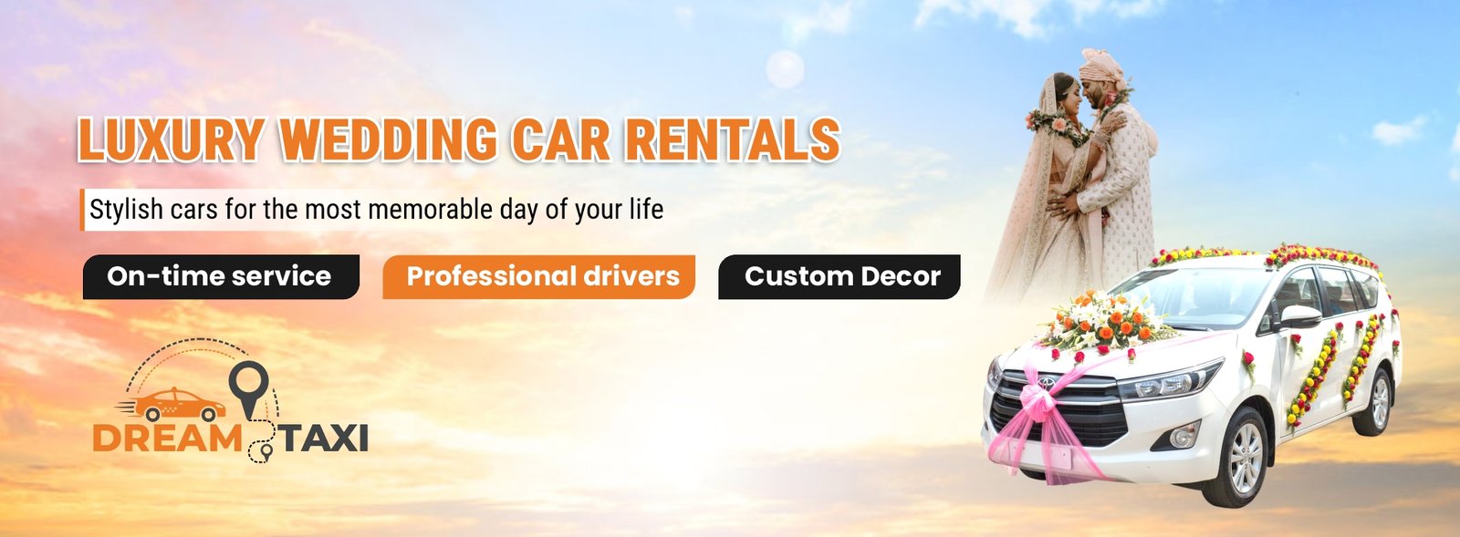 Make your wedding celebrations grand and hassle-free with Dream Taxi’s Wedding Bus Service. Our premium buses are perfect for transporting your guests comfortably and safely to the wedding venue, hotels, or any event location. Spacious, air-conditioned, and well-maintained, our buses ensure a luxurious and stress-free journey for family and friends. Professional drivers, punctual service, and flexible routes make Dream Taxi the ideal choice for your wedding travel needs.